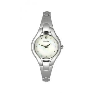 Seiko Women's Diamond Silver-Tone Mother of Pearl Dial Dress SUJF85