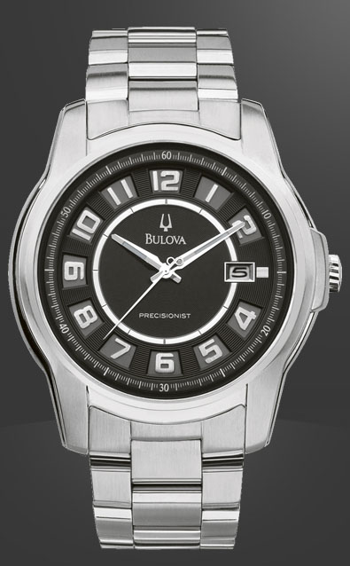 The most accurate watch in the world with a continuously sweeping second hand. In stainless steel with curved crystal, multiple-layer black and silver dial, continuously sweeping second hand, luminous hands, calendar, locking deployment buckle and water resistance to 30 meters.