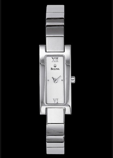 Silver dial. Curved crystal. Stainless steel bracelet. Moisture resistant.