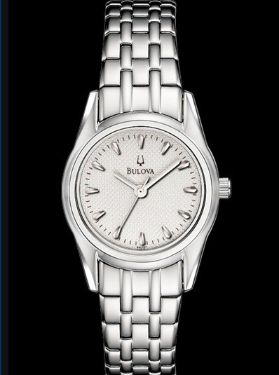 In stainless steel with domed crystal, silver-white patterned enamel dial, calendar, second hand, locking fold-over buckle and water resistance to 30 meters.
