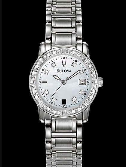 In stainless steel with 24 diamonds individually hand-set on case and white mother-of-pearl dial, luminous hands and markers, calendar, second hand, deployment buckle and water resistance to 30 meters.