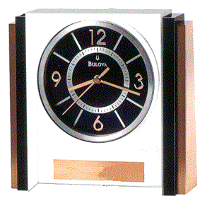 Crystal case, Black crystal and rose gold finish metal sides, Rose gold finish clock housing, Two tone black and silver finish metal dial with raised rose gold numerals, 4" x .75" engraving plate included.