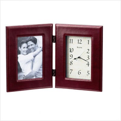 Burgundyn leather hinged case, Metal dial, 4" x 6" photograph opening, Protective glass lens.