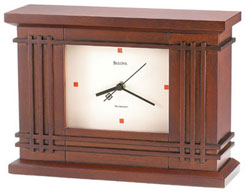 Solid wood case, Antique walnut finish, Westminister melody on the hour, Protective glass lens. Adaptation of a drawing of a tabouret designed by Frank Lloyd Wright for the Darwin D. Martin House, Buffalo, New York 1904.