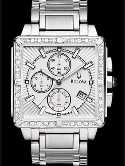 Silver-white dial. 24 diamonds. Chronograph. Stainless steel case and bracelet. Deployment buckle. Water resistant to 30 meters / 100 feet.