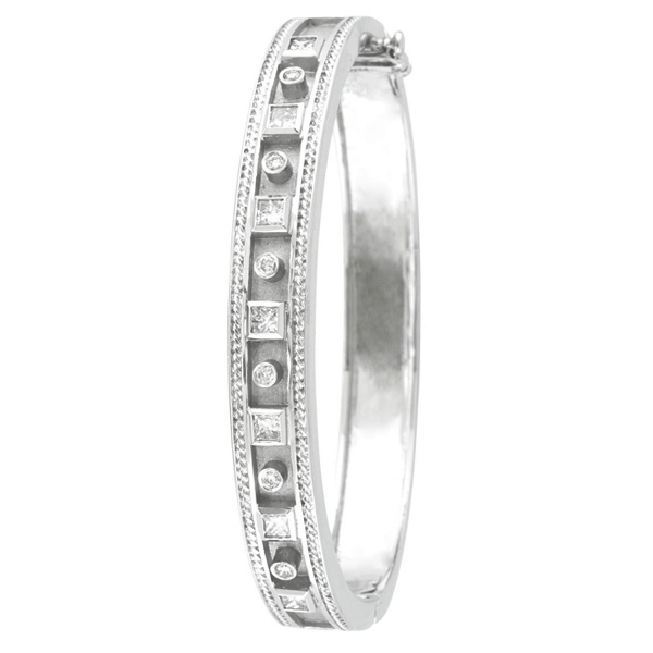 Antique Style Diamond Bangle 14K White Gold