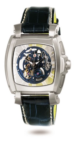 Exhibition case back to exhibit the architecture of the finely skeletonized movement