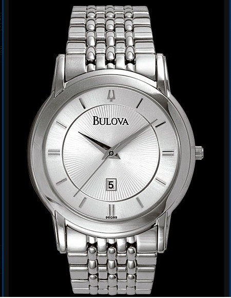 Silver patterned dial. Stainless steel case and bracelet. Deployment buckle. Water resistance to 30 meters/100 feet.