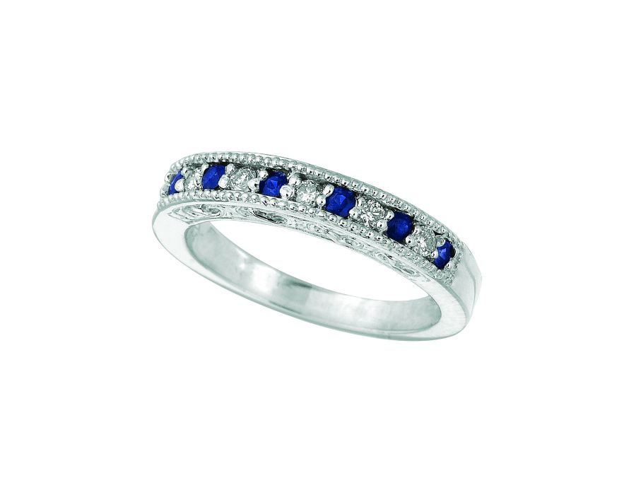 Sapphire And Diamond Ring, 14K White Gold Stackable