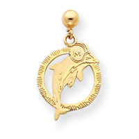 14k Miami Dolphin Post Earrings w/ Dolphin in Ring