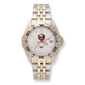 Dial with date Luminous markers Water resistant Extra links Deployment buckle Chrome-plated Ionic brushed Brass case Mineral crystal Screwdown caseback Stainless steel caseback 3atm Rotating bezel Luminous hands Miyota Quartz mvt Stainless steel band Two-Tone