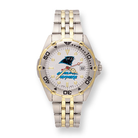 Chrome-plated Mineral crystal Luminous markers Dial with date Rotating bezel Screwdown caseback Ionic brushed Stainless steel caseback 3atm Brass case Extra links Luminous hands Stainless steel band Water resistant Miyota Quartz mvt Deployment buckle Two-Tone