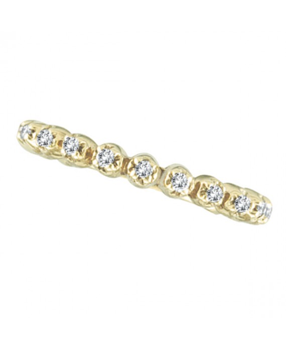 Diamond Stackable Eternity Ring in 14K yellow gold. 17 brilliant diamonds that run ALL THE WAY AROUND this ring. Please note that there is a small shank in the back for sizing. DiamondEternity