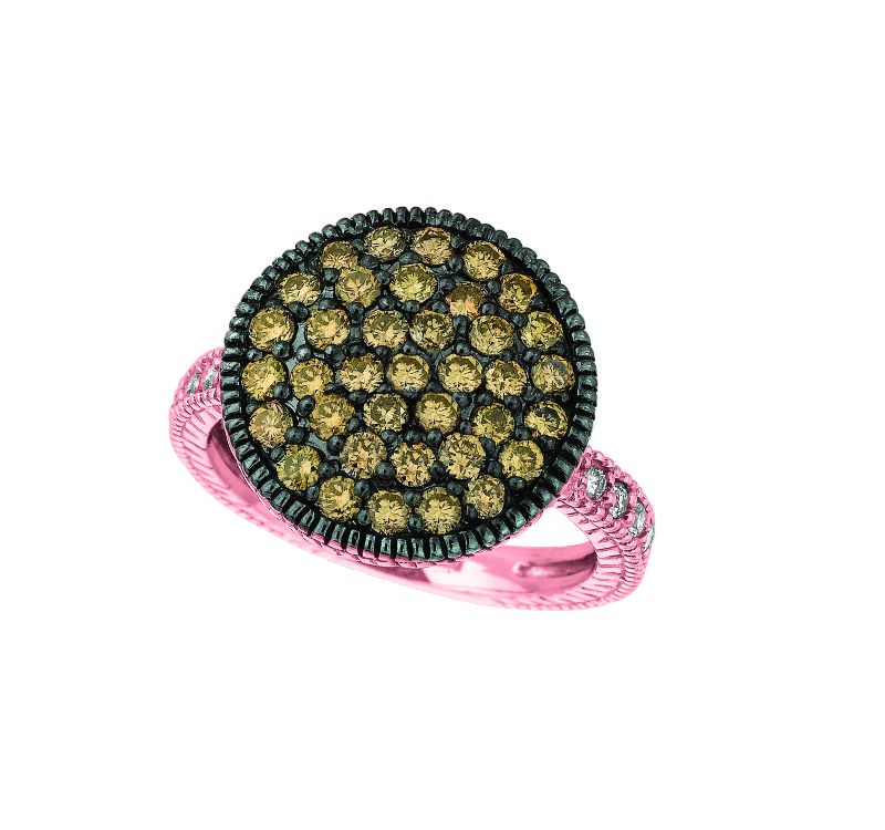 Champagne & white diamond round ring