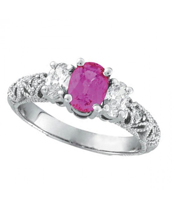 Pink Sapphire Three Stone Diamond Engagement Ring