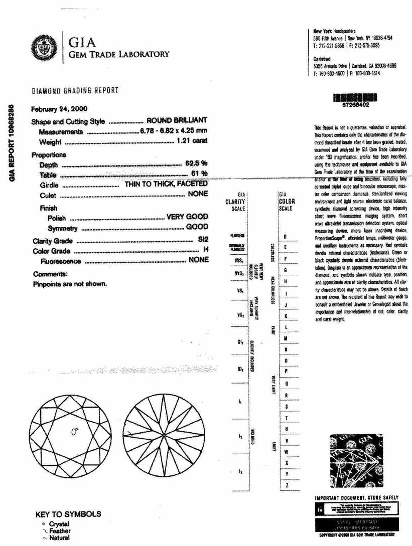 Home > Round Brilliant Cut Diamond GIA Cert 1.21ct; Color H; Clarity SI2