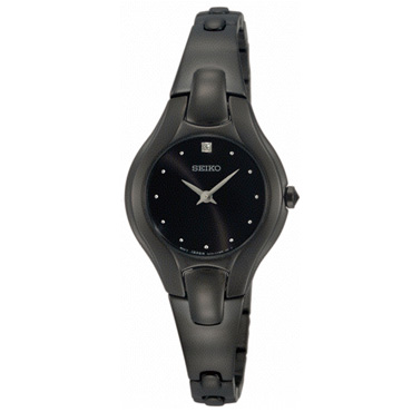 Seiko Ladies Diamond Bangle Watch - Black Dial - Black Ion Finish SUJF89