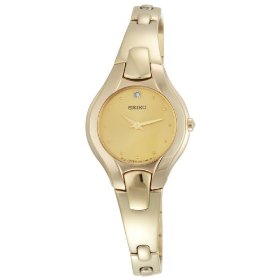 Seiko Ladies Diamond Bangle Watch - Gold-Tone Face & Bracelet SUJF88