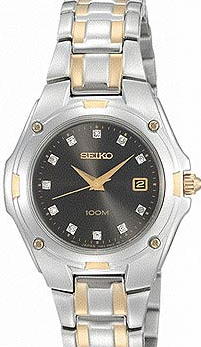 Seiko Ladies' Diamond Two Tone Black Dial SXDB50