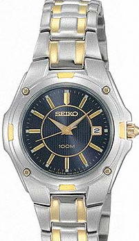 Seiko Ladies' Quartz Two Tone Black Dial SXDB46