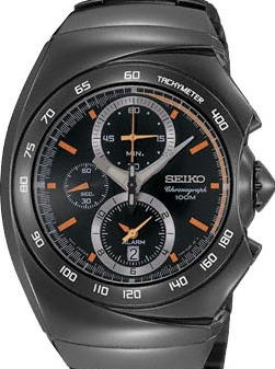 Seiko Men's Alarm Chronograph Orange Accents Tachymeter SNAB45
