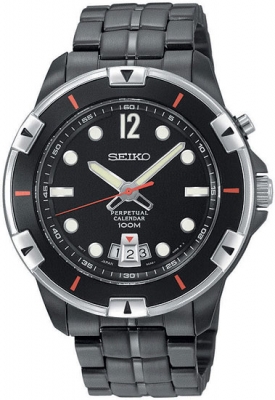 Seiko Men's Anodized Steel Perpetual Calendar Black Dial Quartz SNQ095