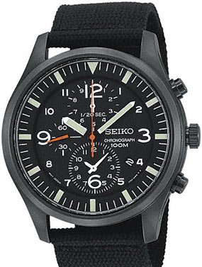 Seiko Men's Chronograph Black Dial Black Canvas Strap SNDA65