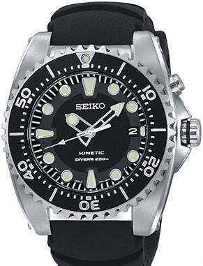 Seiko Men's Kinetic Dive Watch Stainless Black Dial Black Rubber Strap