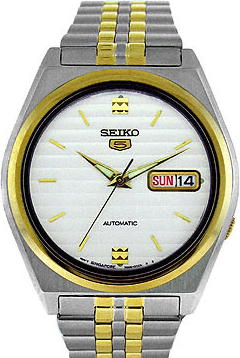 Seiko Men's Stainless and Gold Tone Automatic White Face SNX166