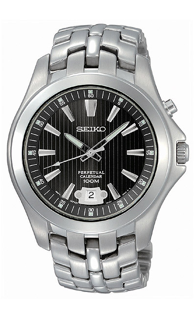 Seiko Steel Perpetual Calendar Black Dial Men's Watch SNQ101