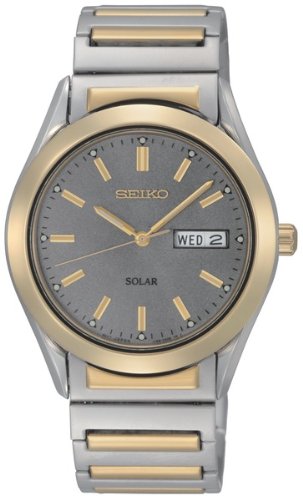 Seiko SNE180 Mens Watch Two Tone Stainless Steel Solar Expansion Bracelet Gray Dial