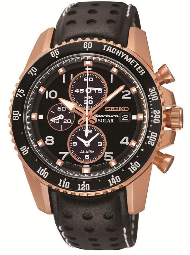 Seiko Solar Chronograph Black Dial Leather Strap Men's Watch SSC274